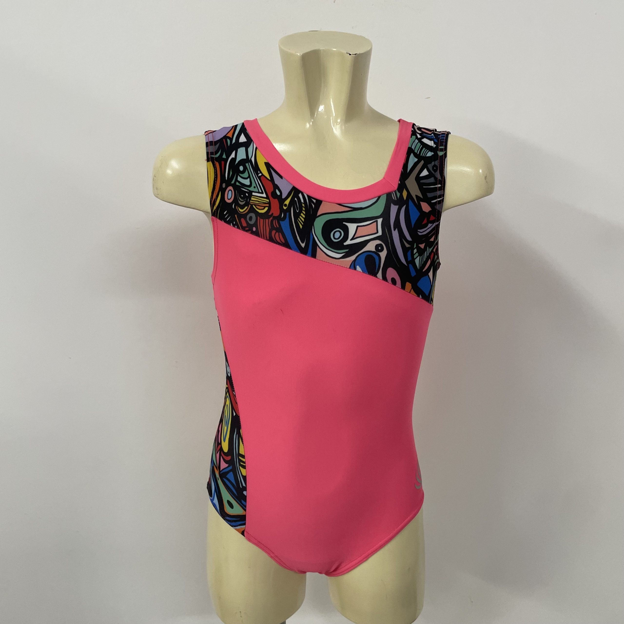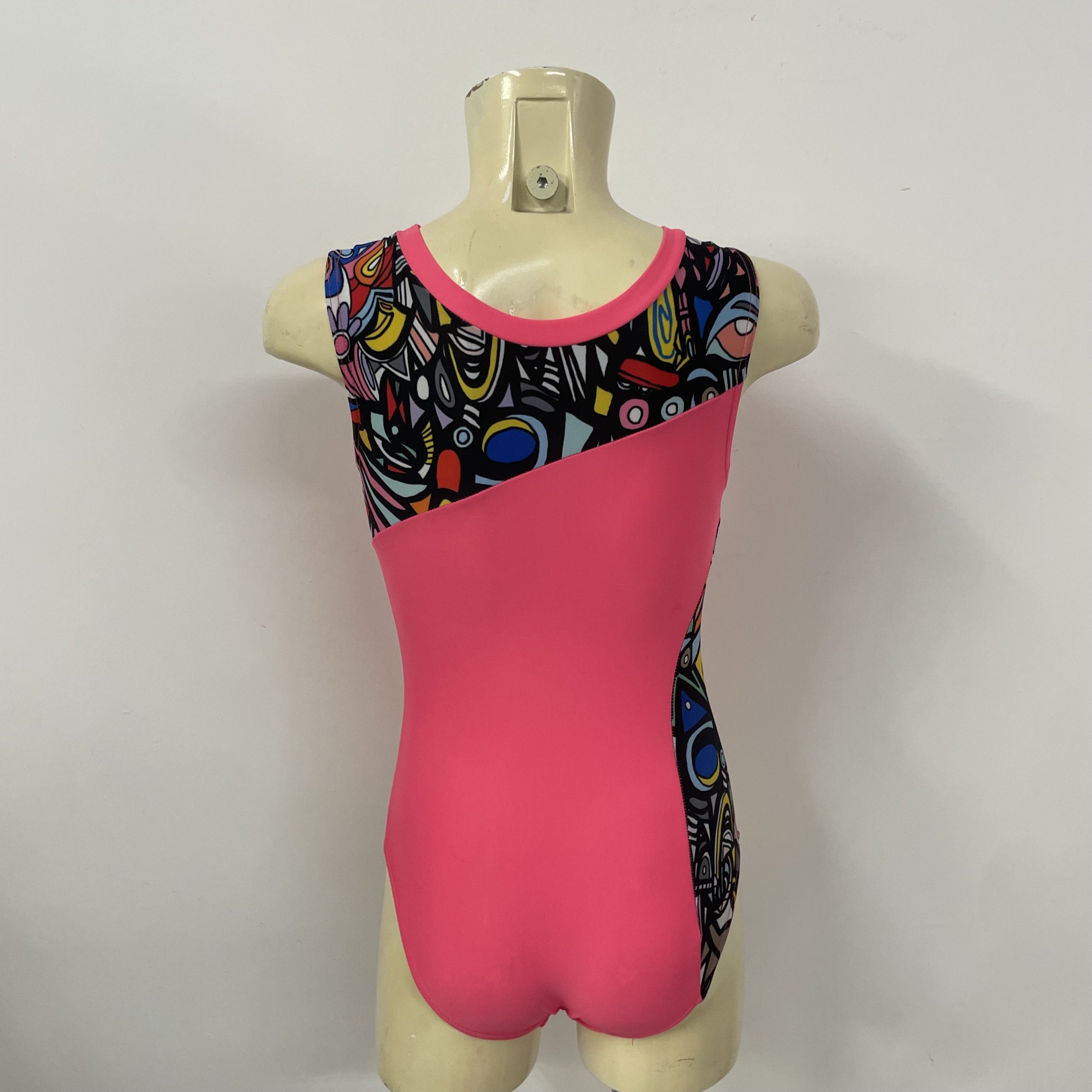 Body ginnastica artistica senza manica LY rosso fluo opaco + LY fantasia base nera.