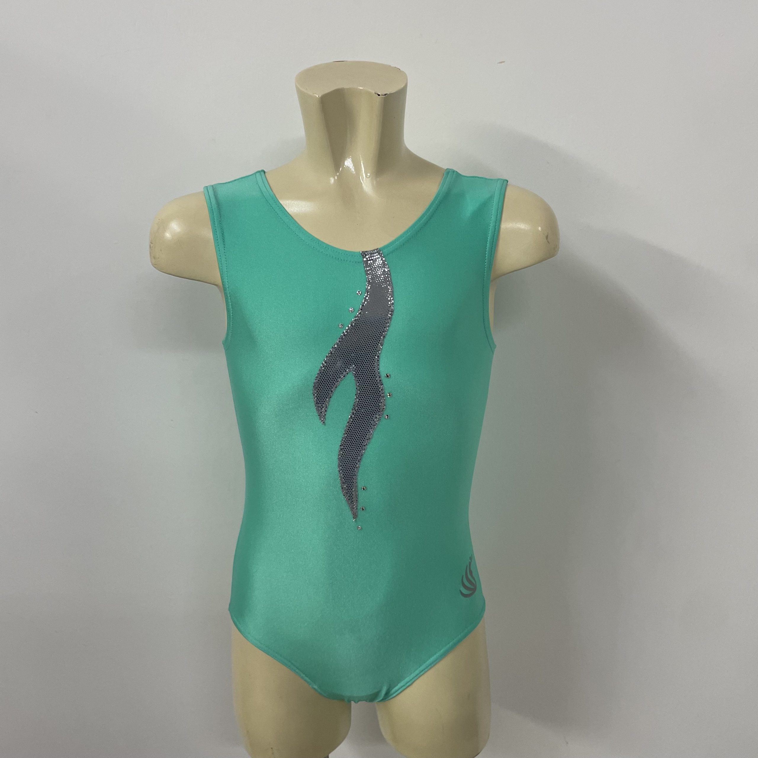 Body ginnastica artistica senza manica MOD. 12 con punti luce LY verde acqua + LUR 612 argento.