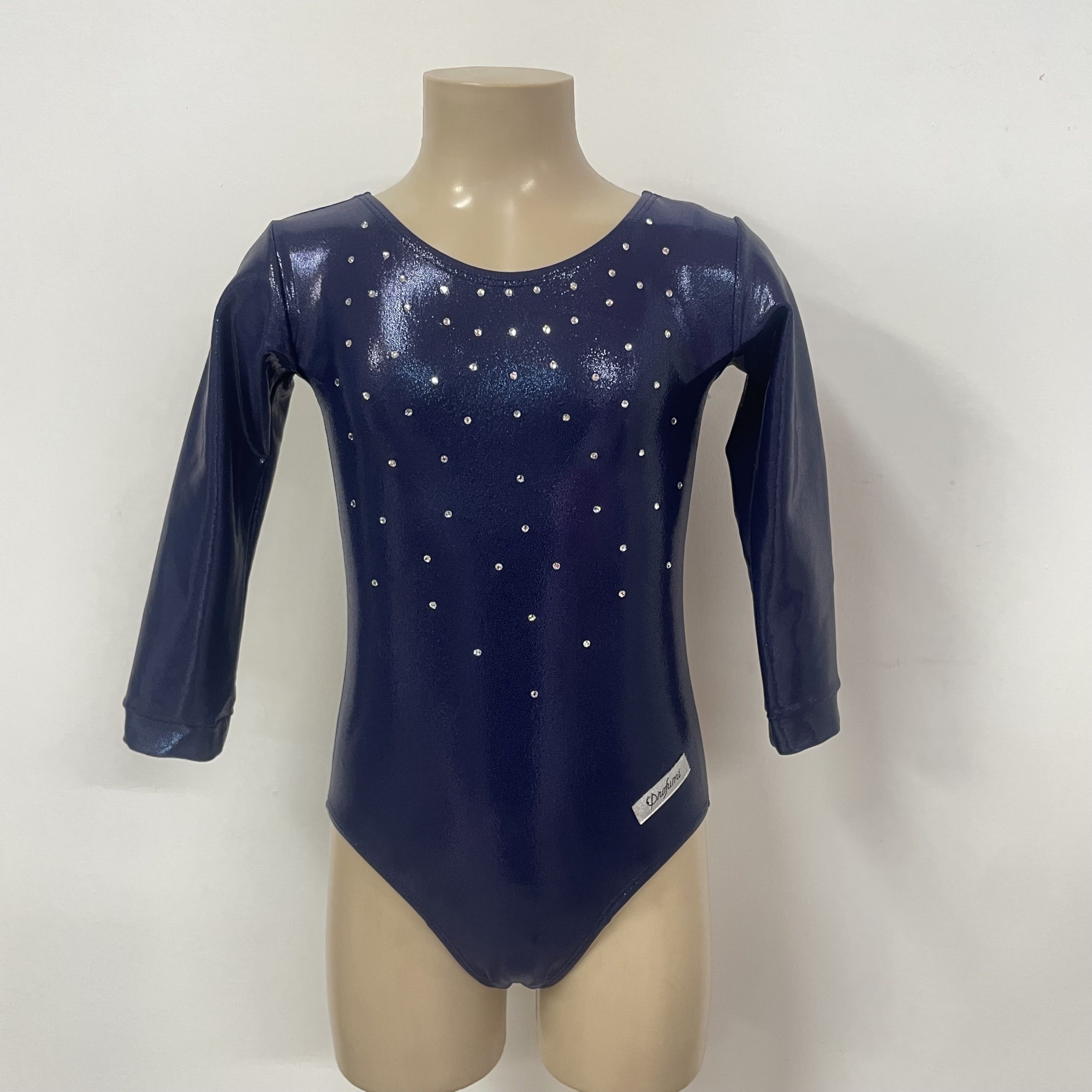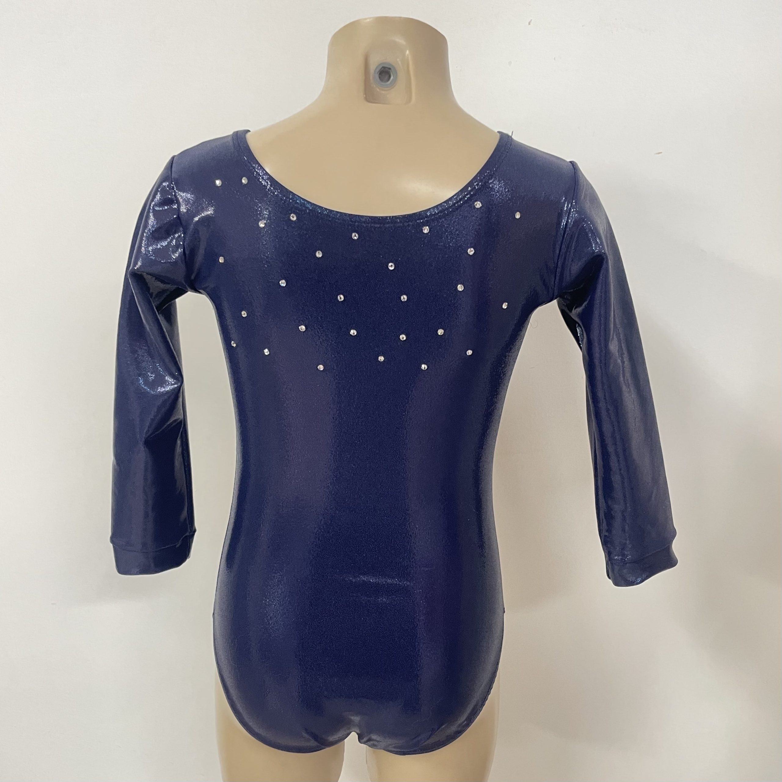 Body ginnastica artistica con strass forma 8, LG109 blu con manica 3/4 e strass sul retro.