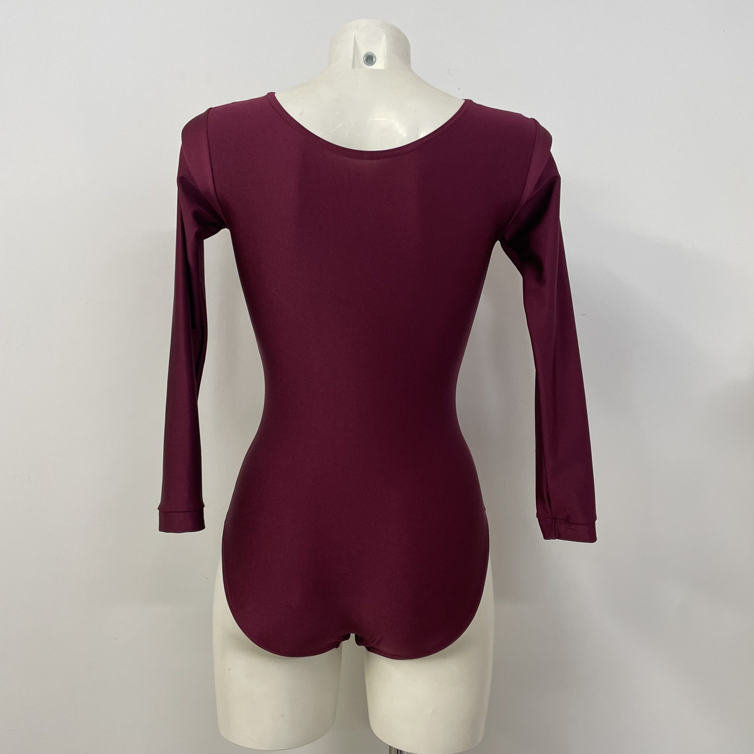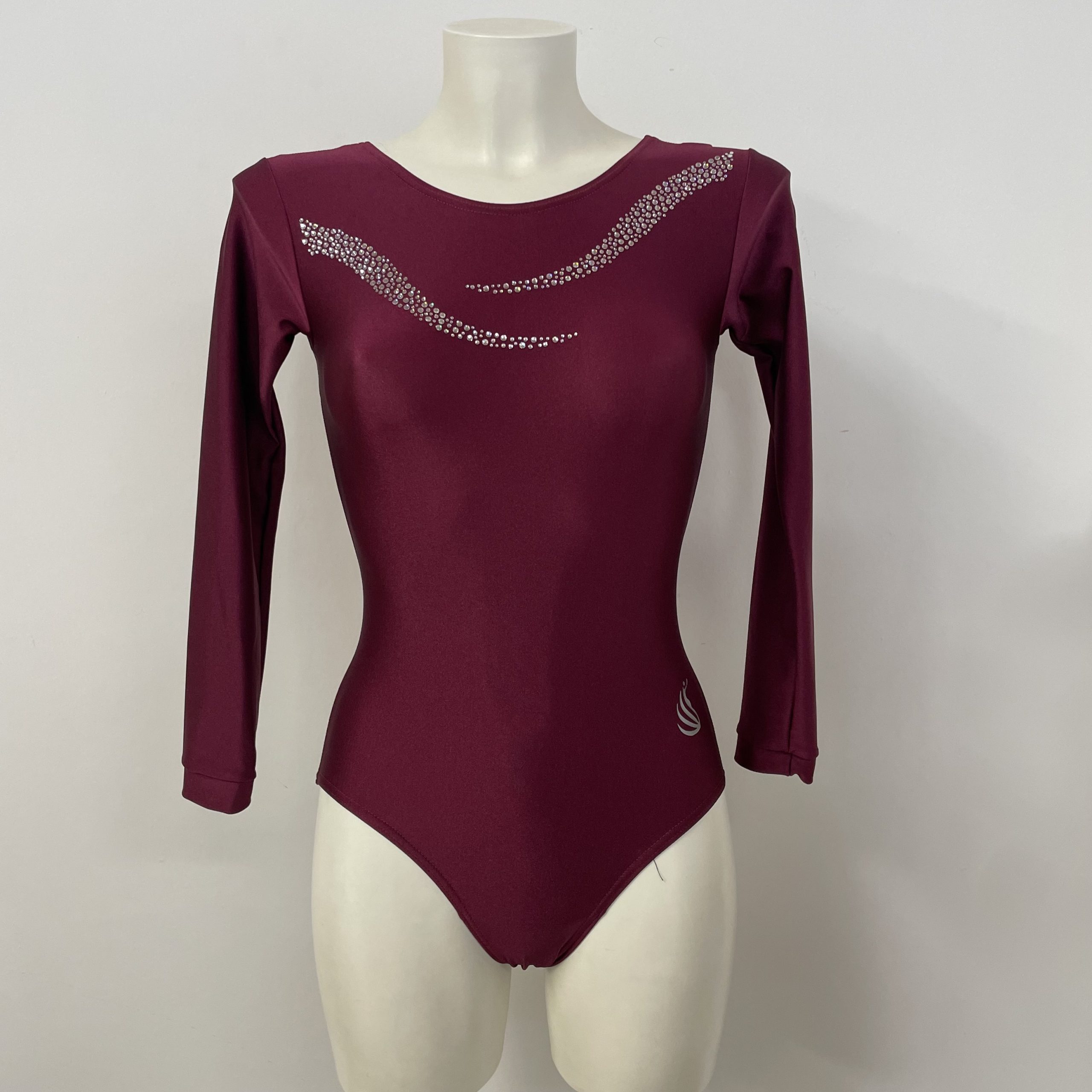 Body ginnastica artistica a manica lunga in lycra 4111 amaranto e applicazione cartina ramo.