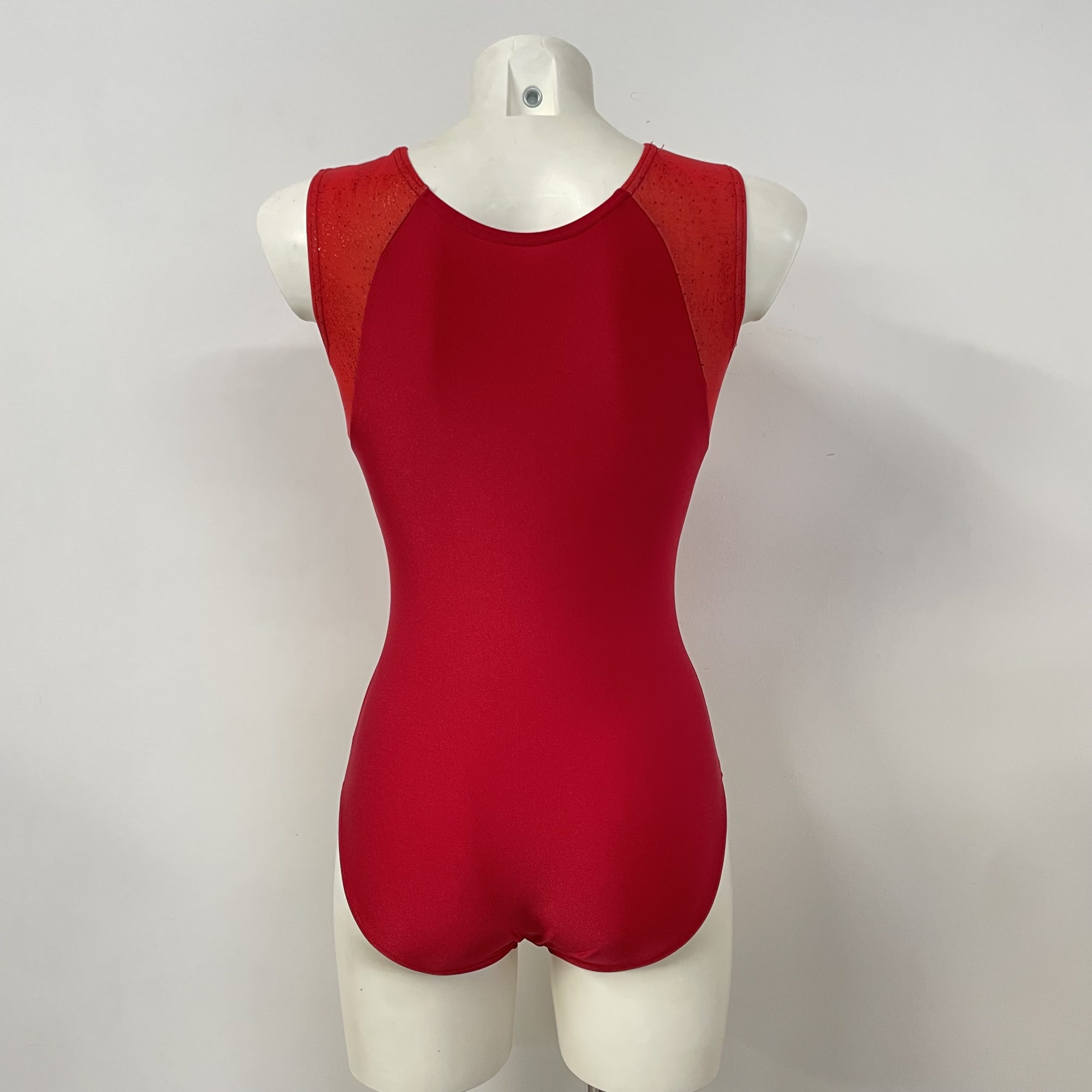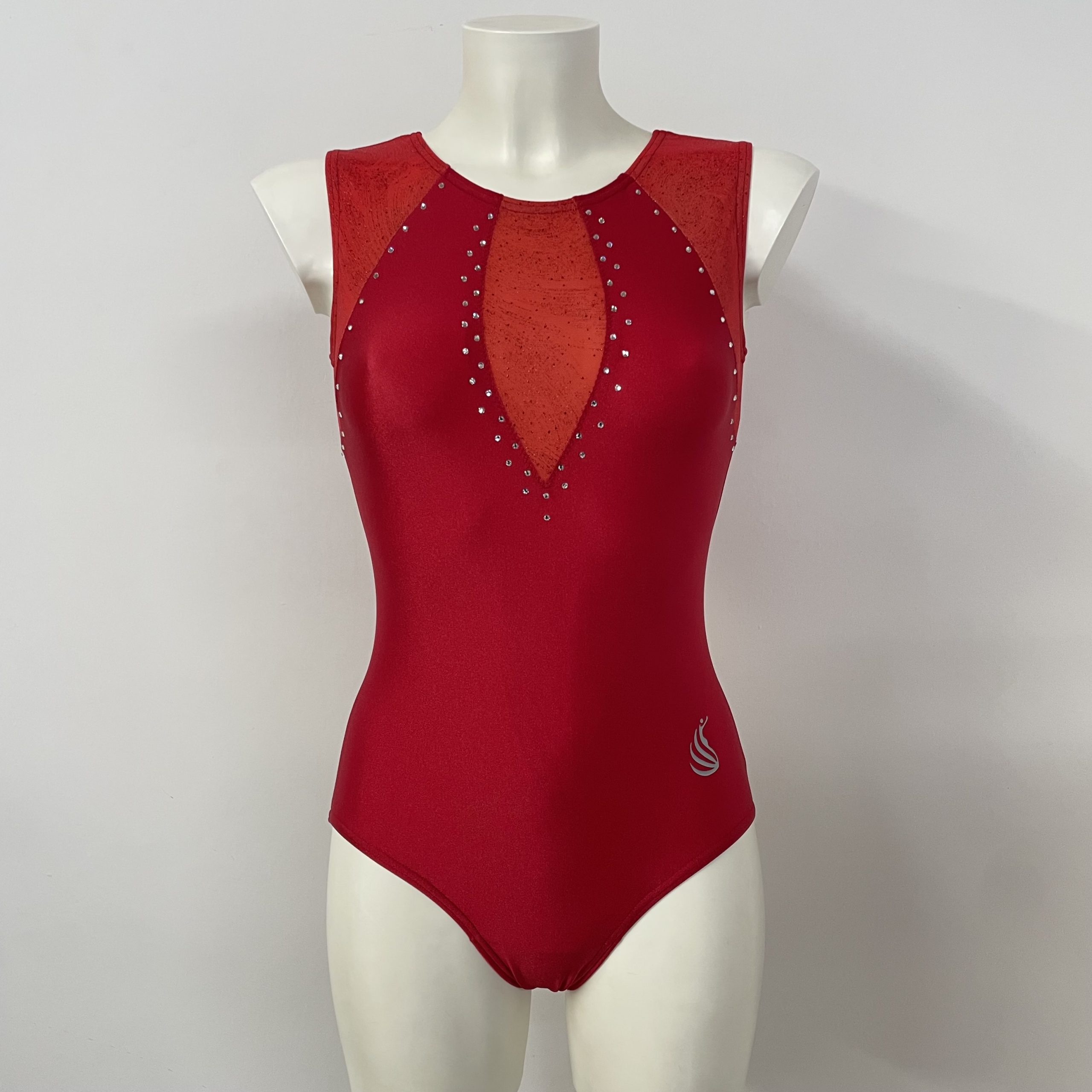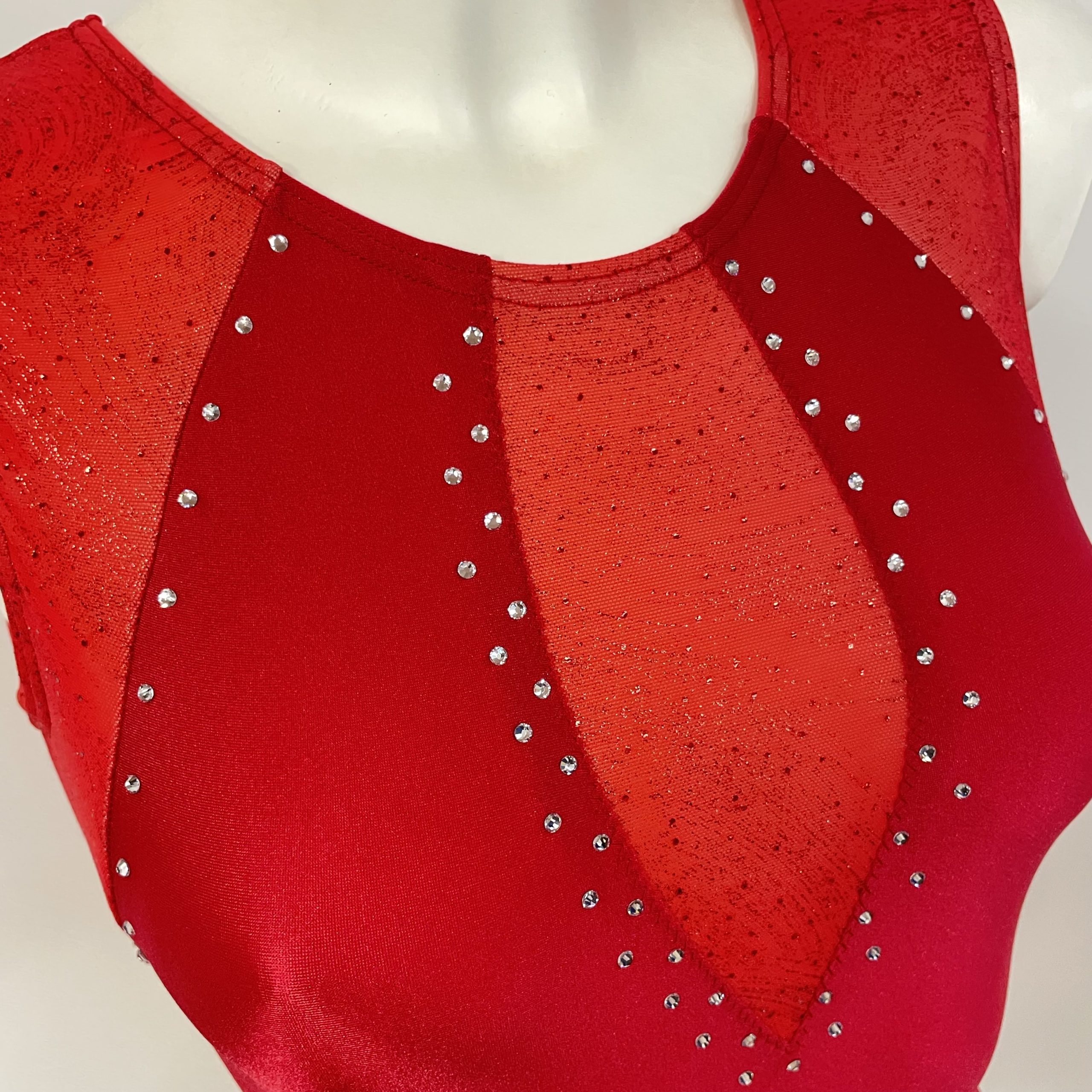 Body ginnastica artistica senza manica MOD. C253 in lycra 6 rosso ed inserti lurex.